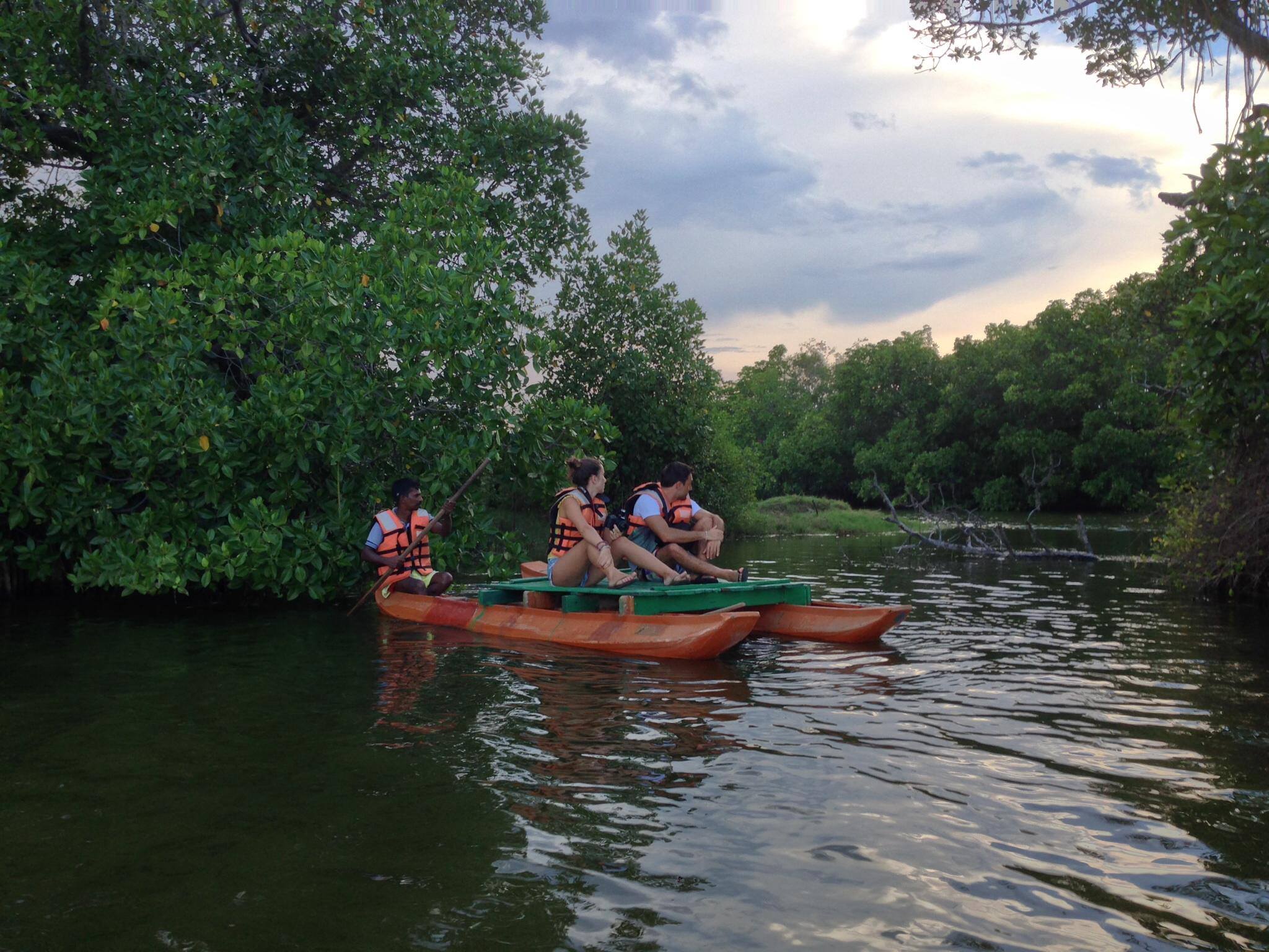 Arugam Lagoon offers peaceful boat rides through mangroves, where visitors can spot crocodiles, birds, and stunning sunset reflections over calm waters.